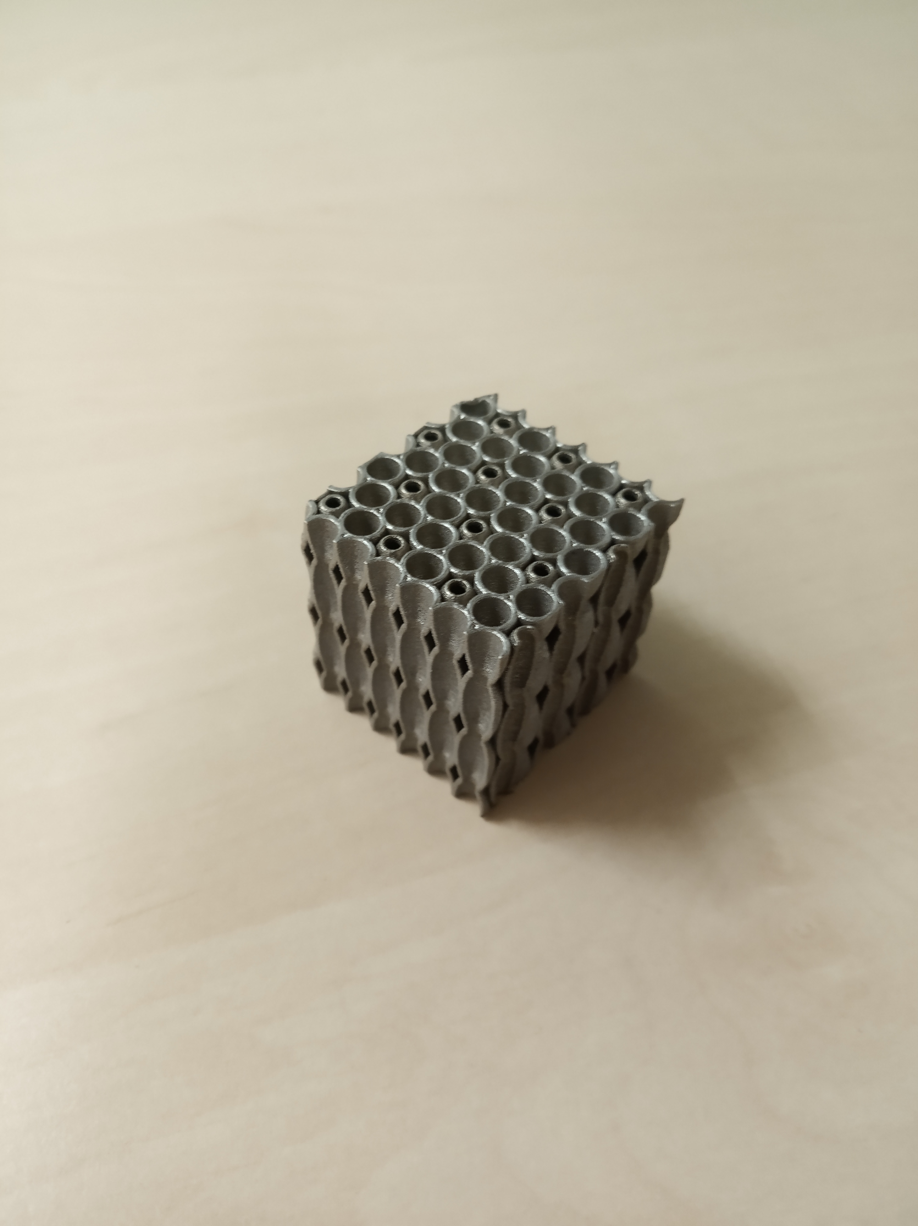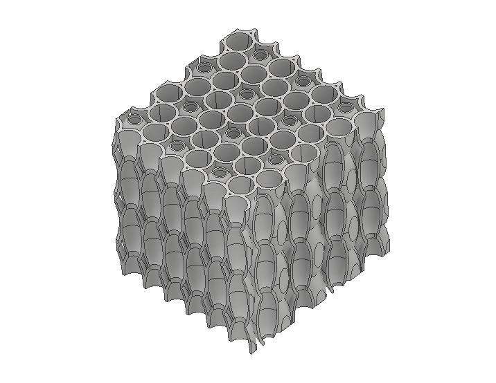 Buněčná mikroprutová struktura je homogenní strukturou s definovanými (nejen) mechanickými vlastnostmi ve všech směrech, která je vhodná pro technologii 3D tisku. Strukturu je možné vytisknout jak metodou „Fused deposit Modeling“, tak metodou „Selective Laser Melting“ (SLM). Buněčná mikroprutová struktura má plástvový tvar, jehož nejmenším prvkem je tzv. element, kruhového průřezu. Ideální varianta je, kdy je buňka tvořená šesti elementy po obvodu a jedním středovým elementem, který je o polovinu předsazen oproti elementům po obvodu. Všechny elementy mají stejný elipsovitý tvar s kruhovými otvory na obou koncích. Elementy jsou duté a jejich velikost může být měněna pomocí měřítka, nejmenší povolený průměr otvorů je 0,2 mm, maximální rozměr není omezen. Tloušťka stěny jednotlivých elementů je omezena minimální hodnotou 0.1 mm a maximální hodnotou, která je 1/4 průměru otvoru elementu. Buňky jsou tvořeny vždy sudým počtem elementů např. 4, 6, 8 apod. Všechny rozměry buňky a jejich uspořádání jsou variabilní v závislosti na parametrech technologie 3D tisku a způsobu využití buněčné mikroprutové struktury za účelem konstrukčního a technologického využití.