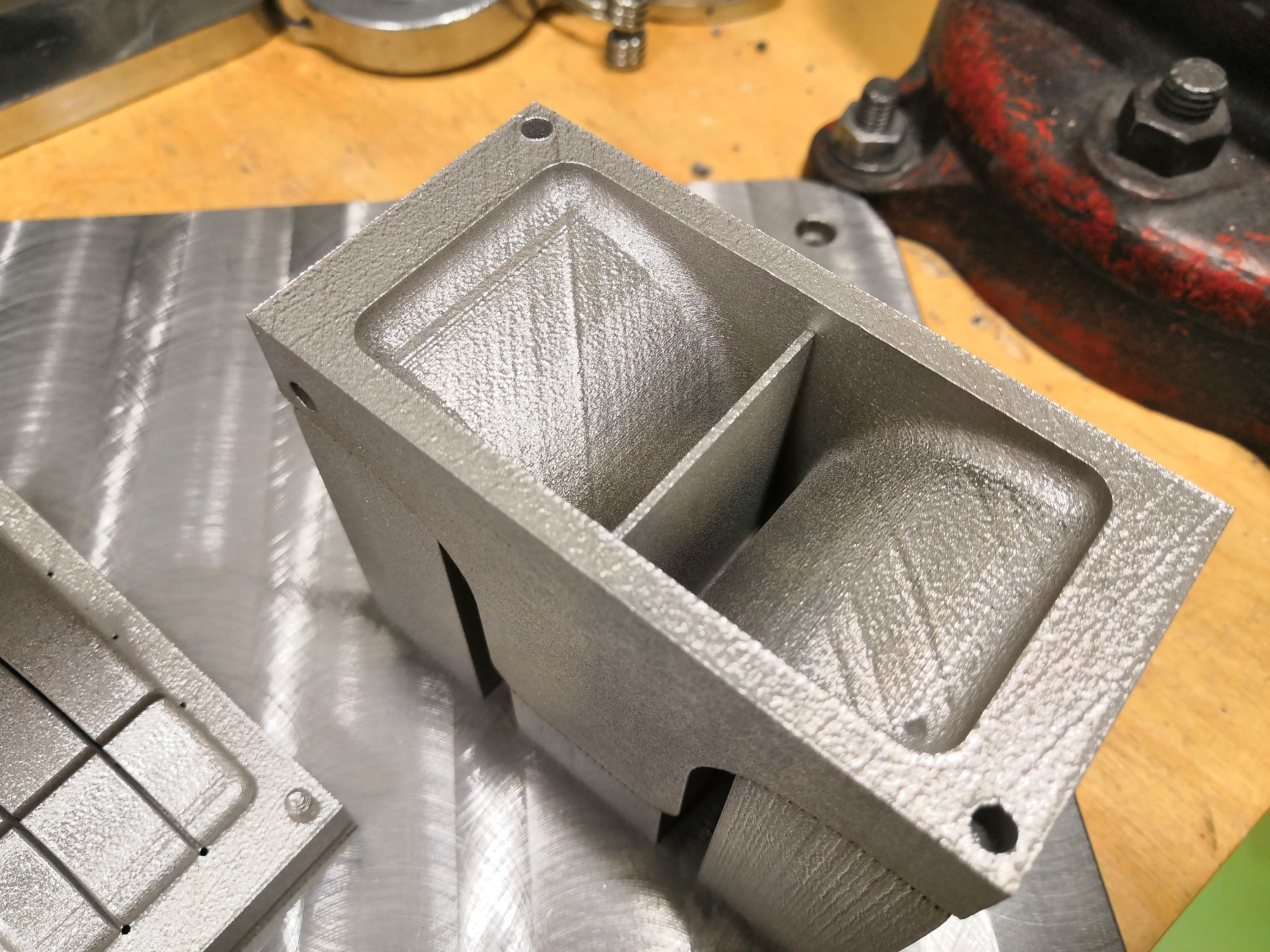 Momentálně je díl ve fázi vyrobeného prototypu z materiálu korozivzdorné oceli 316L. Další fáze bude vytištění z materiálu, který se používá pro výrobu forem – vysokopevnostní ocel a následné testování.