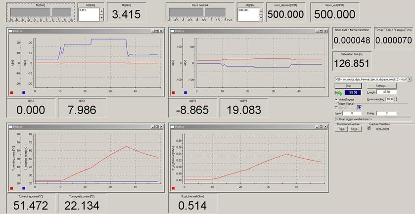 Další možnost využití spočívá v simulacích v reálném čase, kdy je možné využít model jako virtuální dvojče. Z toho důvodu byl vytvořený model upraven tak, aby bylo možné jej provozovat na real-time platformě, v tomto případě dSpace. Bylo vytvořeno grafické uživatelské rozhraní, které umožňuje uživateli v reálném čase ovládat simulaci pohonu. Aktuálně je možné dále rozšířit, aby bylo možné měřit přímo reálné signály na I/O pinech dSpace generované modelem. To má další potenciální využití např. v tzv. Hardware In the Loop simulacích.
