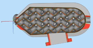 Podstatou výsledku je vnitřně strukturovaný tlumič pro RC modely letadel a jiné RC modely osazené spalovacím motorem. Standardní tlumiče používané v modelech a dostupné na trhu jsou složeny z několika součástí. Nosnou součástí je dělený obal tlumiče, který je spojený v dělící rovině šrouby, lisováním, nebo jiným typem spojení. Uvnitř tlumiče je jedna nebo více strukturovaných tlumících vložek, které tlumí výfukové plyny proudící z motoru. Skladbou tlumících vložek lze v tomto případě dosáhnout požadovaného tlumícího efektu. Takto koncipovaný tlumič je díky spojovacím prvkům poměrně velký a hmotný, což ovlivňuje vlastnosti např. RC modelů letadel. Nově natržený strukturovaný tlumič je vyrobený jako jeden celek z hliníkové slitiny AlSi10Mg technologií 3D tisku metodou SLM (Selective Laser Melting). Díky této technologii a vhodnému konstrukčnímu uspořádání je možné obal tlumiče zhotovit jako jeden celek včetně tlumící vložky. Geometrie strukturovaného tlumiče je možné díky parametrickému modelování (tvorba 3D modelu) navrhnout a zhotovit individuálně pro každý typ, parametry a výrobní řadu motoru modelu a jejich uchycení v konstrukci RC modelu.